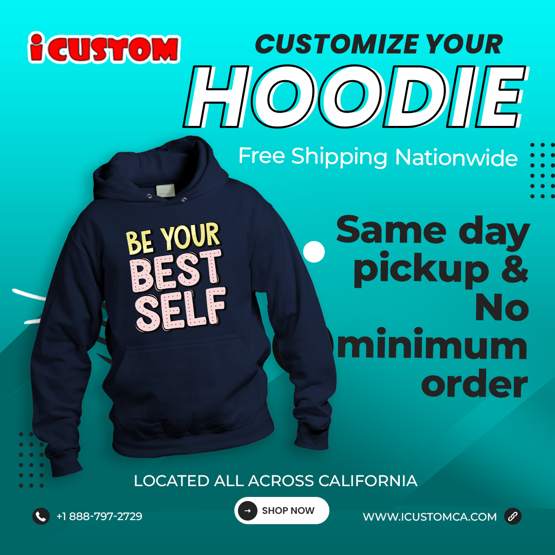 Show your support everywhere with an iCustom personalized hoodie! Pick your style, pick your size, and upload your custom design—it's that easy. Visit Us: www.icustomca.com Call Now: 888-797-2729