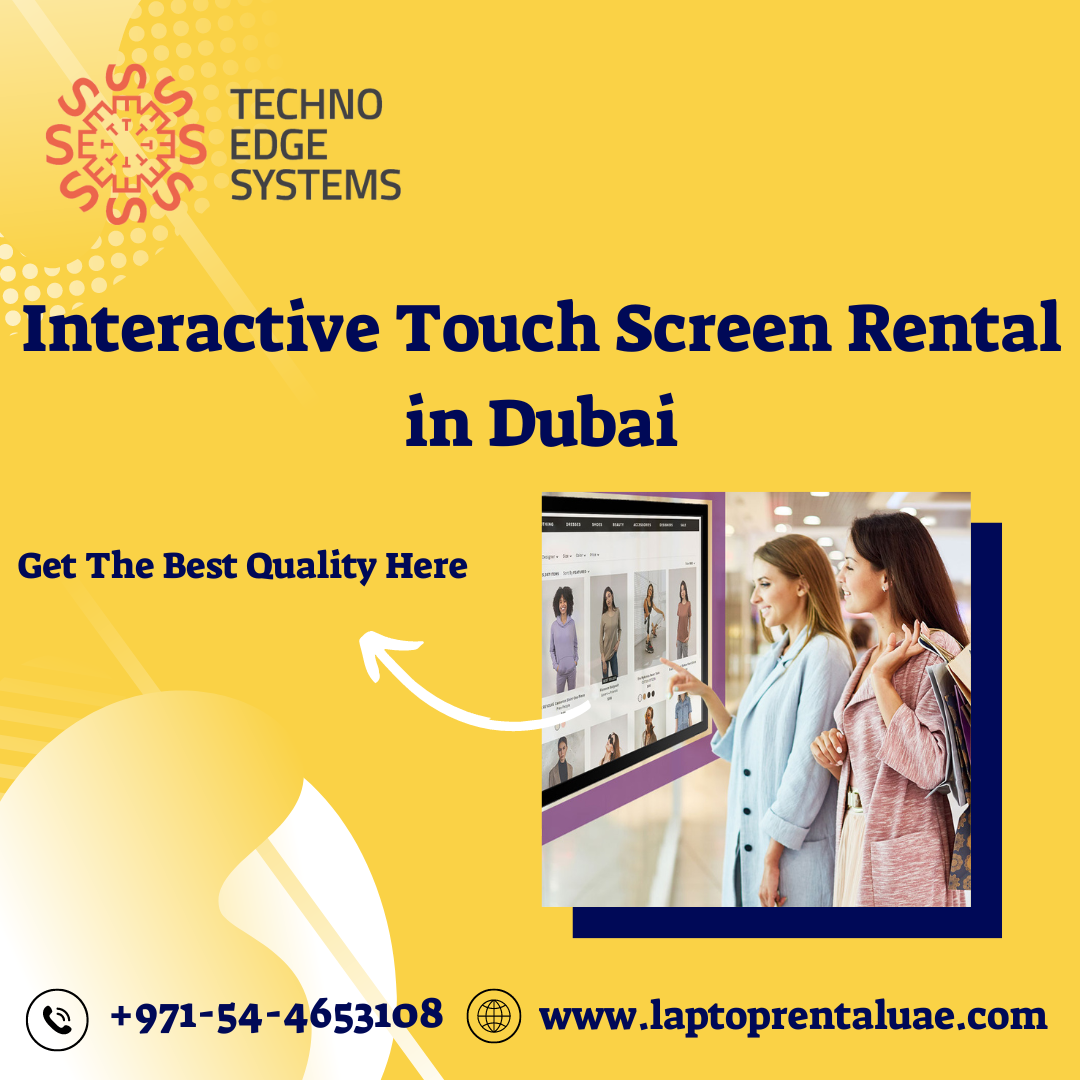 Experience the future with Techno Edge Systems' Interactive Touch Screen Rental in Dubai. Enhance your events with captivating displays for conferences, seminars, and exhibitions. Call us at +971-54-4653108 to improve your events today. For more info visit our website - https://www.laptoprentaluae.com/touch-screen-rental-dubai/