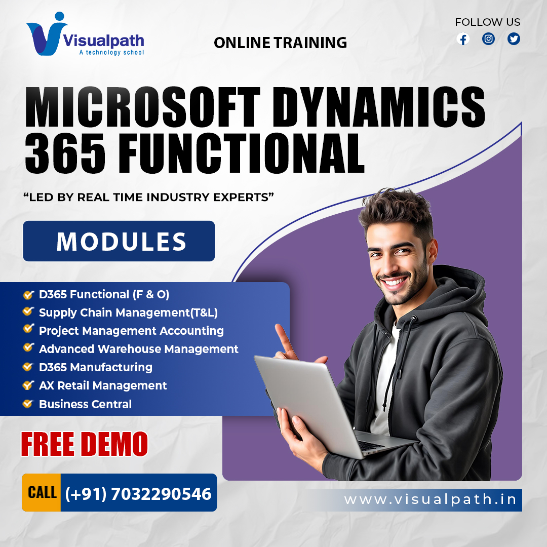 Join Visualpath’s D365 Finance & Operations Training Course. Learn from certified experts with 15+ years of experience on Dynamics 365 Course . Gain 24/7 access to recorded sessions and hands-on project experience. Available in the USA, UK, Canada, India, and Australia. Call: +91-7032290546.