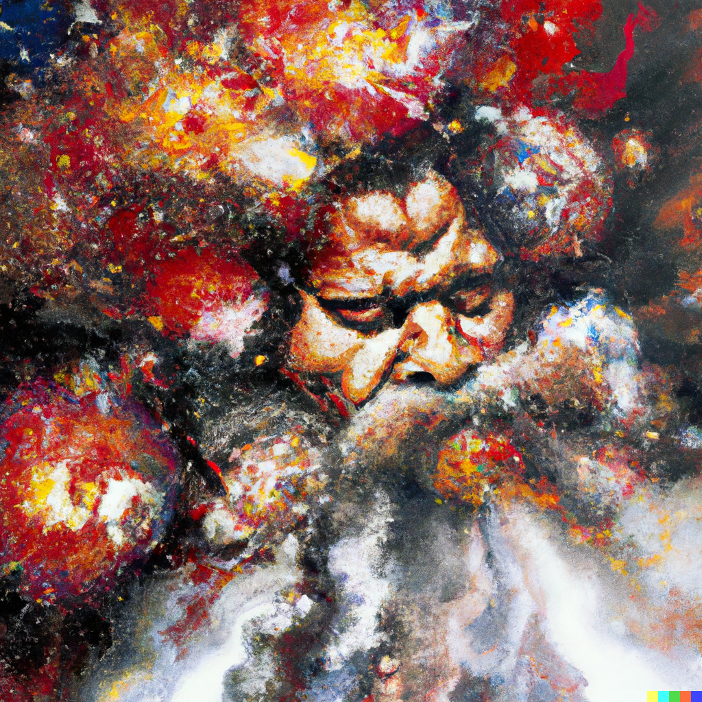 DALL·E 2022 11 24 14.59.04 An expressive oil painting of a Japanese samurai, depicted as an explosio