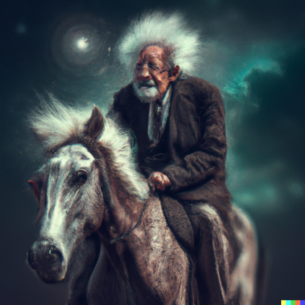 DALL·E 2022 12 08 17.26.15 Fotograph of einstein riding a horse, digital art