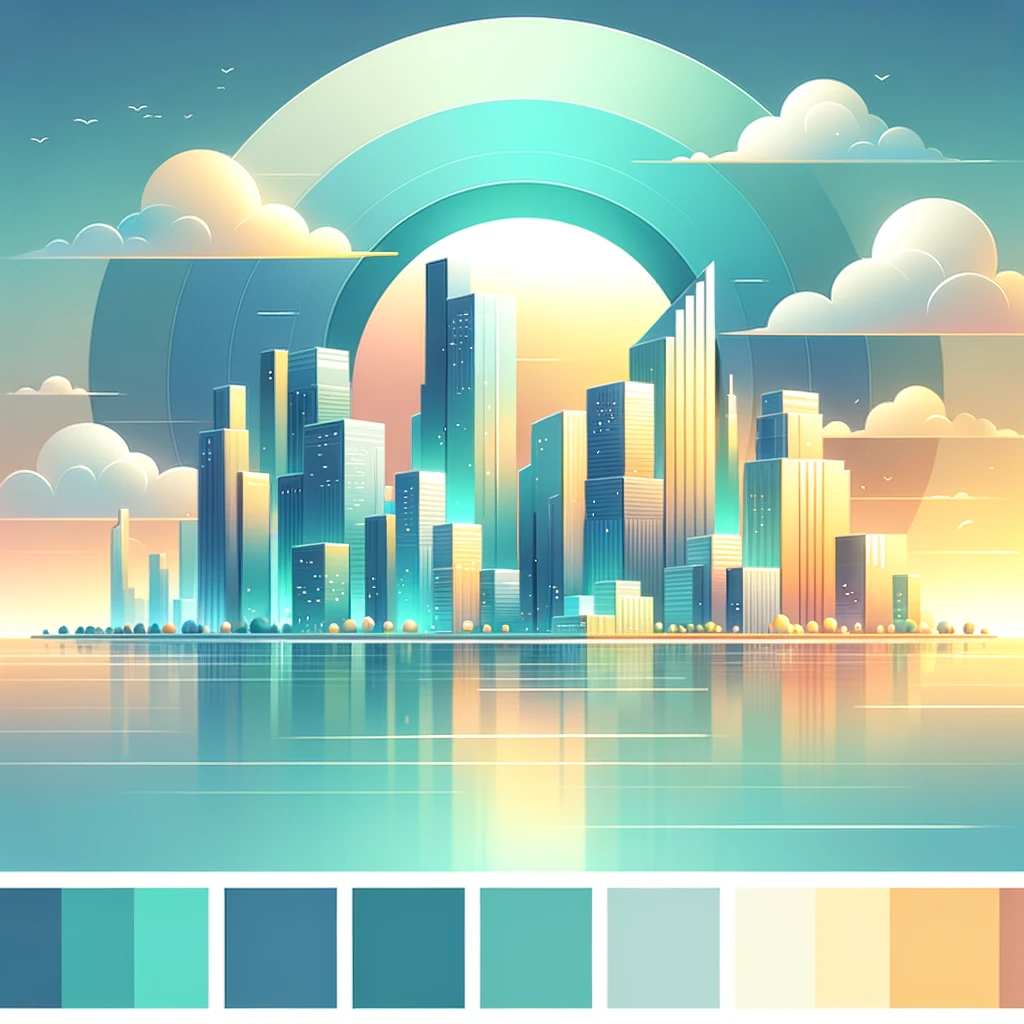DALL·E 2024 01 01 16.45.53 A vibrant and simplified modern city skyline with sleek, stylized buildin