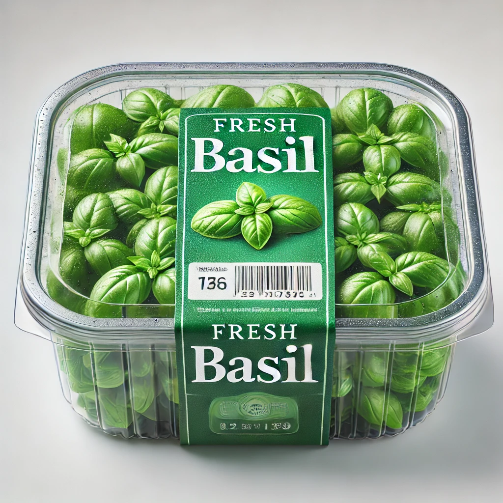 DALL·E 2025 05 08 12.54.52 A realistic product packaging image of fresh basil. The basil leaves are
