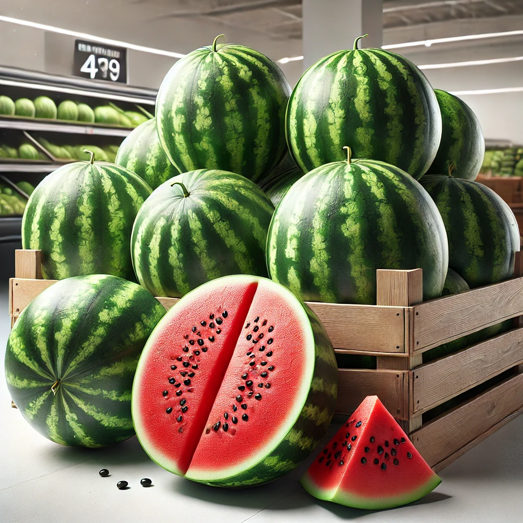 DALL·E 2025 05 09 08.58.14 A realistic product image of watermelons in a grocery store setting. The