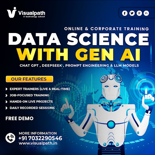 VisualPath offers a career-enhancing Data Science with Generative AI Course in Hyderabad, led by industry veterans with 16+ years of experience. Gain hands-on expertise through real-time projects and master in-demand skills with flexible online training. ☎️Call now: +91-7032290546.