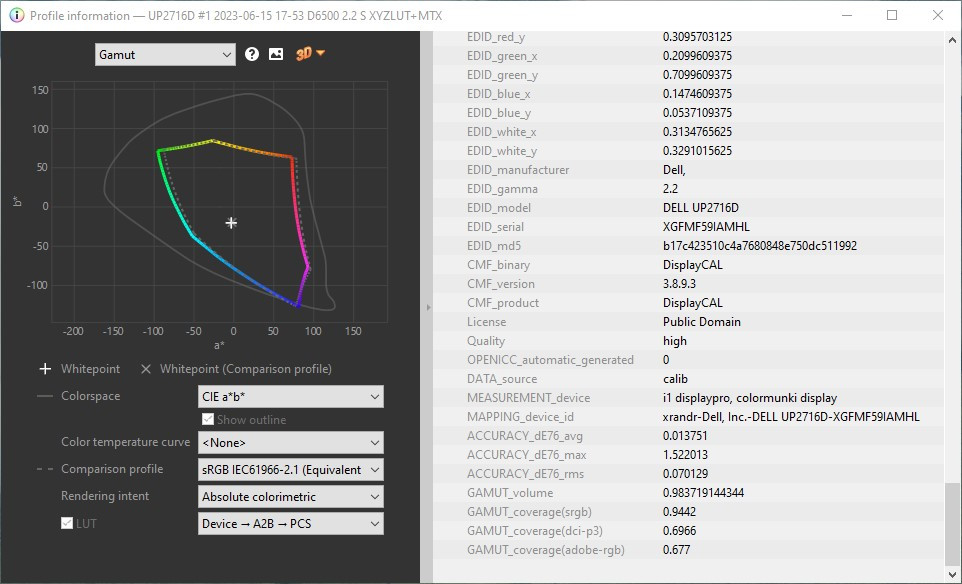 Dell UP2716D DisplayCal sRGB