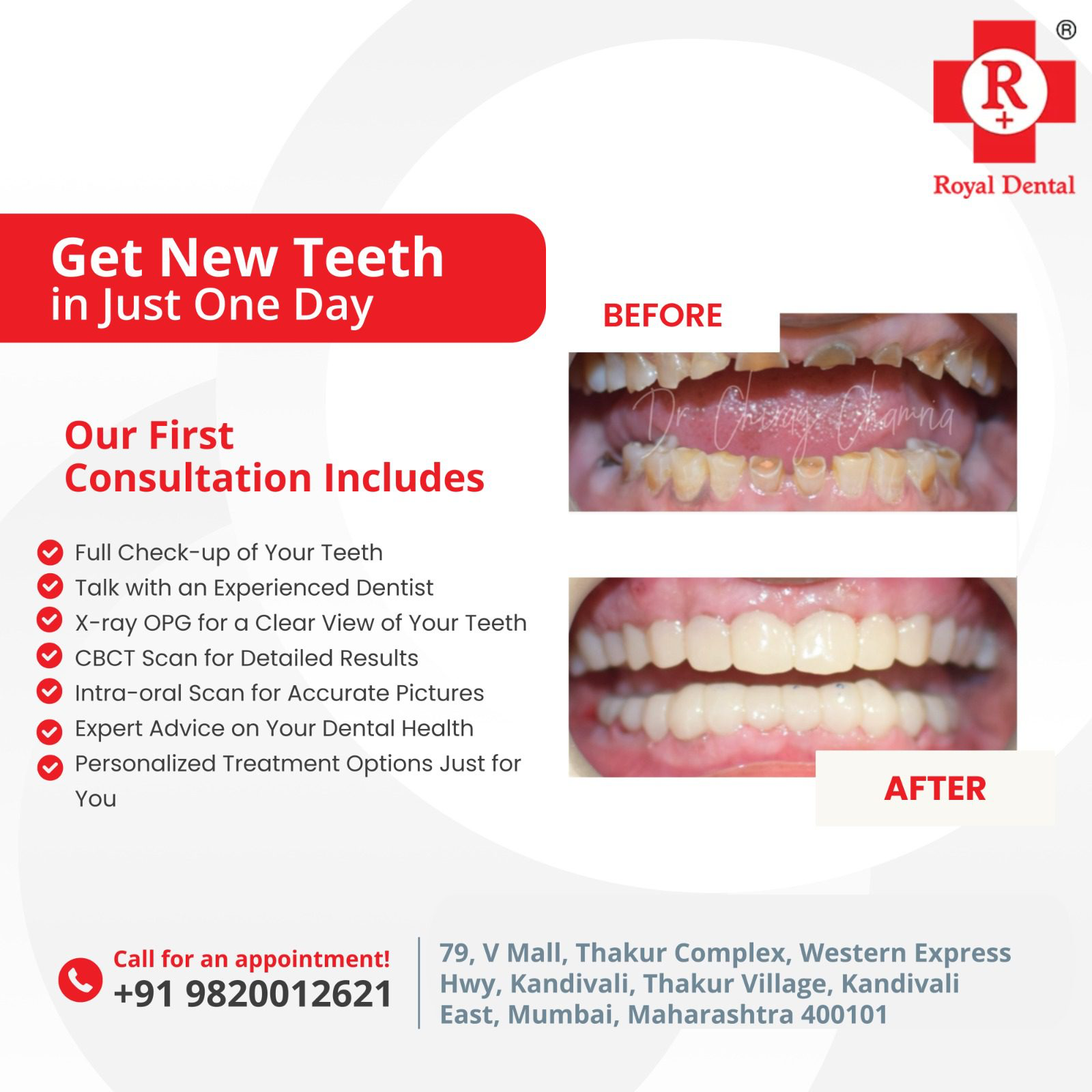 Tired of waiting weeks for your dental treatment? At Royal Dental Clinics, we specialize in Same-Day Smile Makeovers – whether it's dental implants, cosmetic dentistry, or root canal & fillings, get it all done in a single visit!