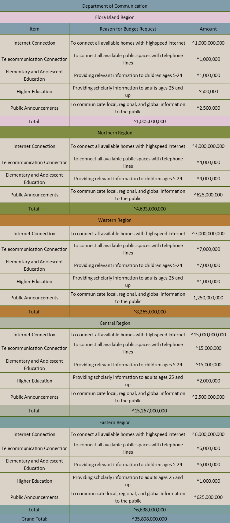 Dep Comm Budget Break Down