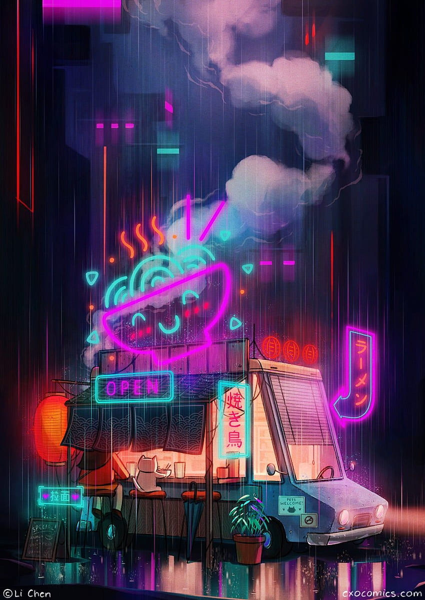 desktop wallpaper i painted this late night ramen scene cyberpunk