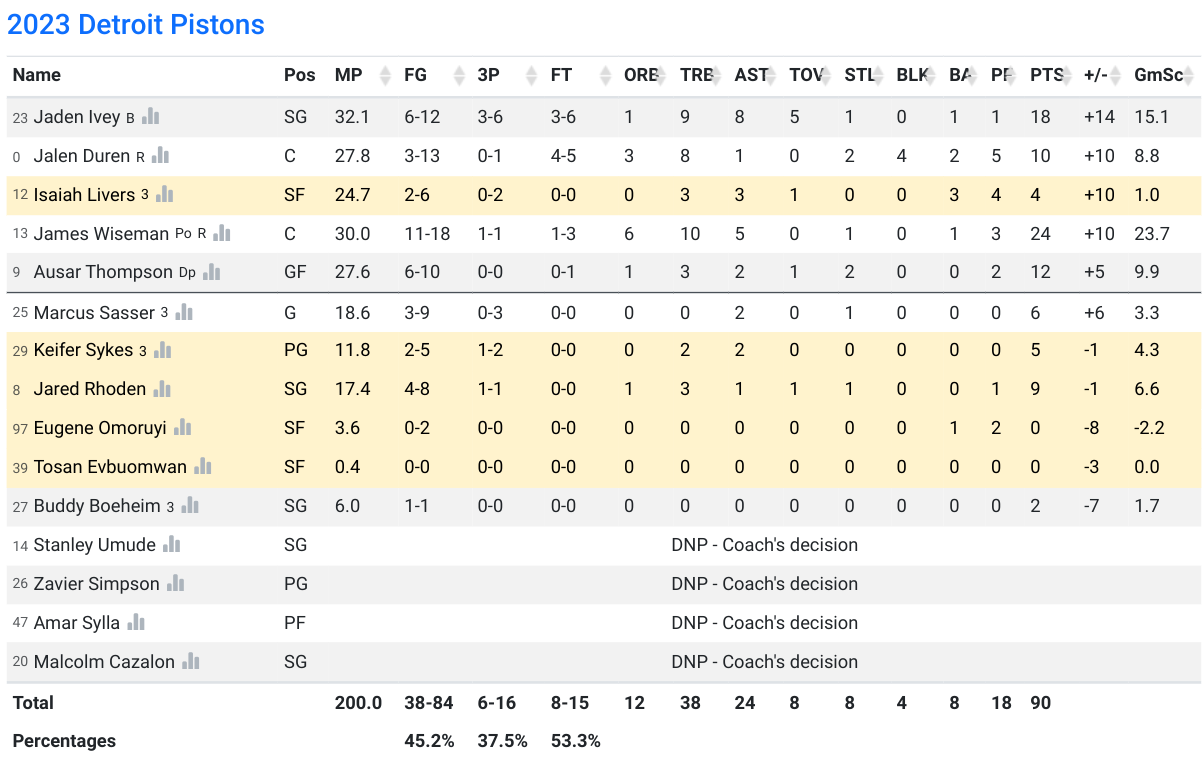 DET box score