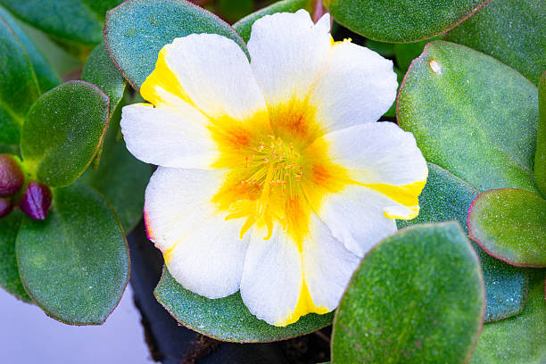 Detailed image of a white-yellow flower of Common purslane (Portulaca oleracea).