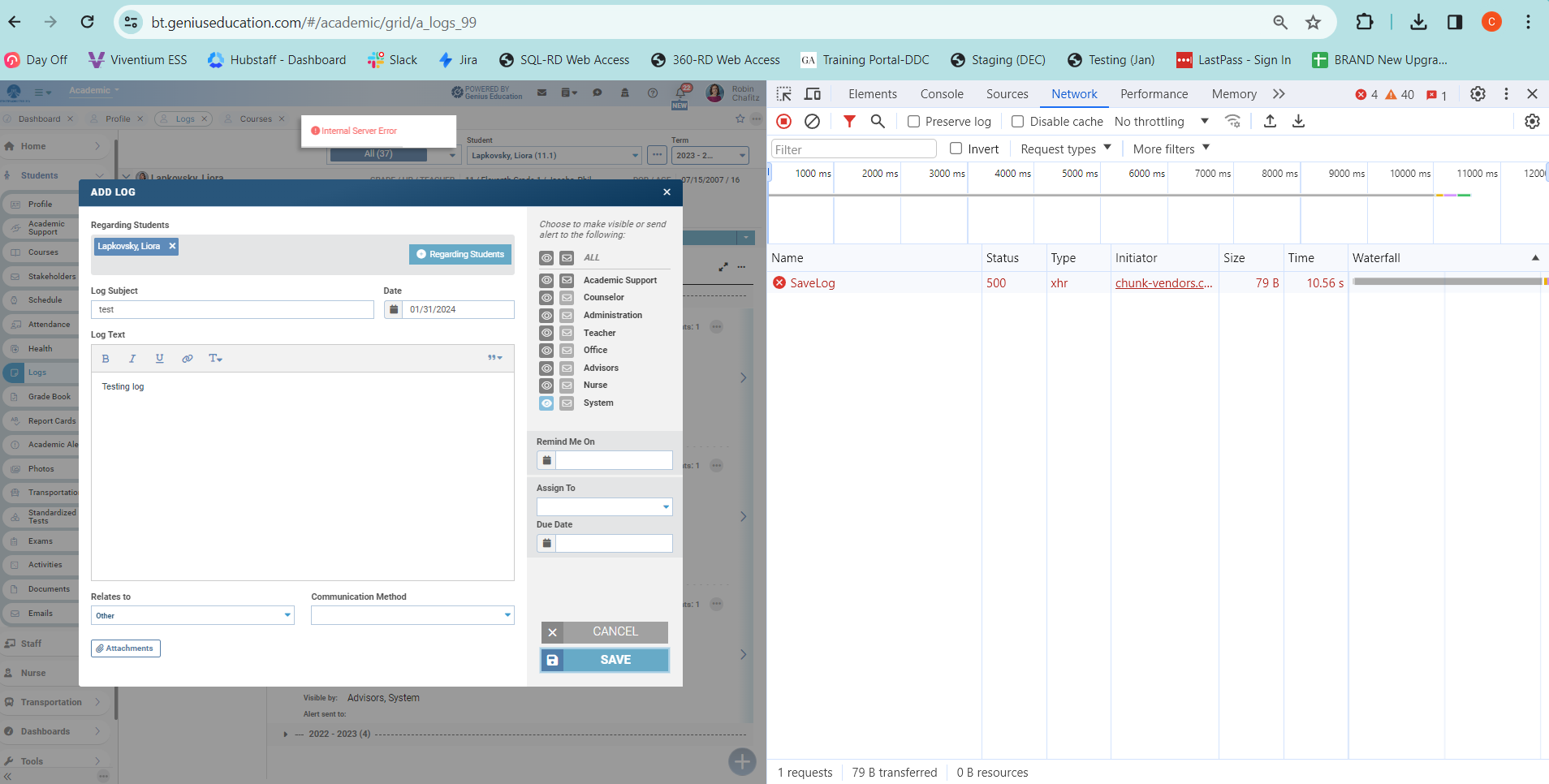 Some errors have occured and the system couldn't process your request.