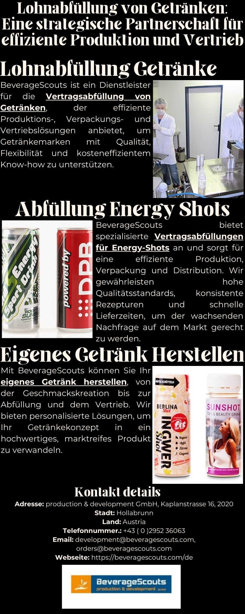 BeverageScouts ist auf die Auftragsabfüllung von Getränken spezialisiert und bietet maßgeschneiderte Produktions-, Verpackungs- und Vertriebslösungen für Getränkemarken. Unsere Dienstleistungen gewährleisten Konsistenz, Qualität und Skalierbarkeit, so dass Marken mit minimalen Betriebskosten wachsen können.