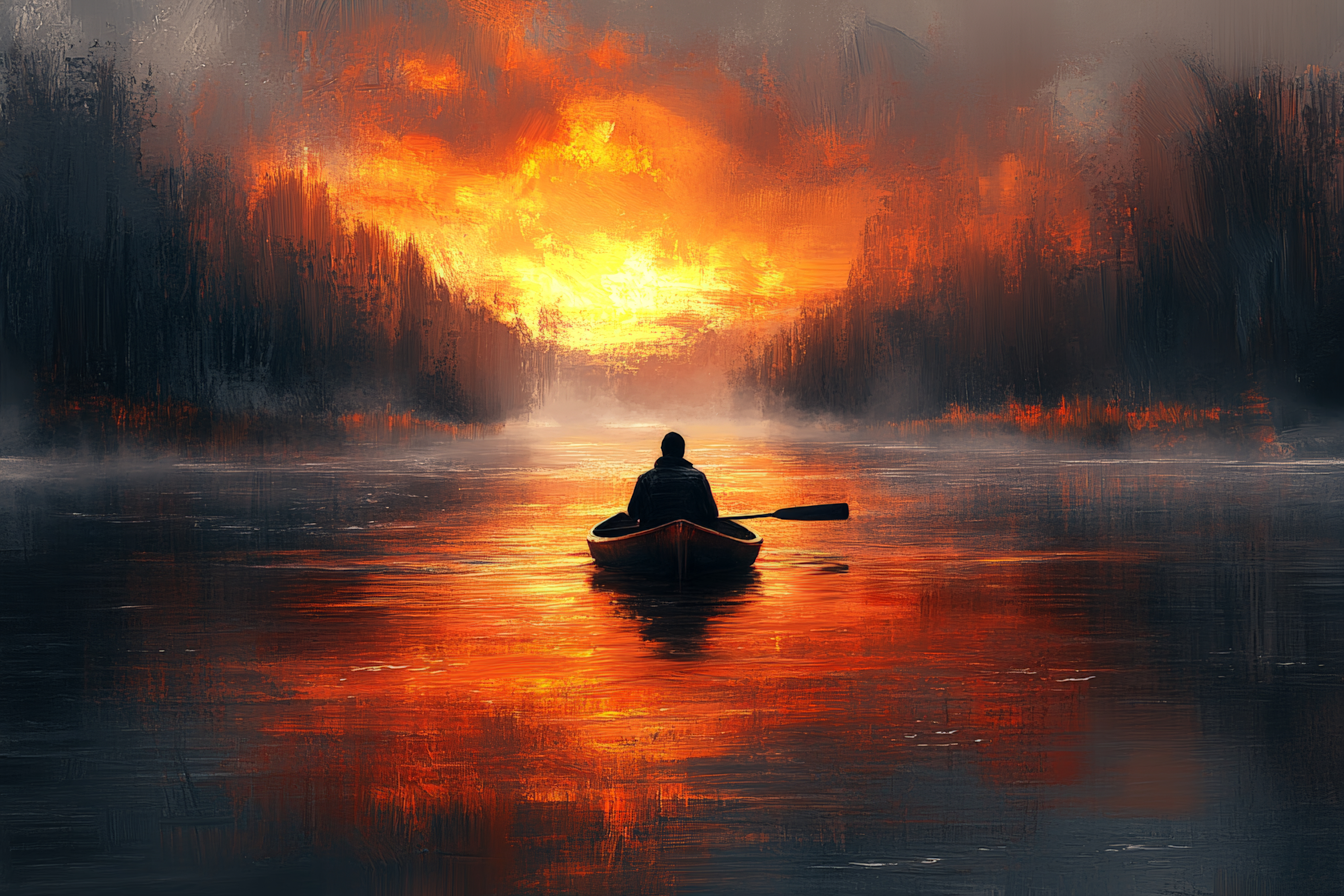 digital art, pescador in a very long river, digital painting style, acrilic painting --ar 3:2 --styl