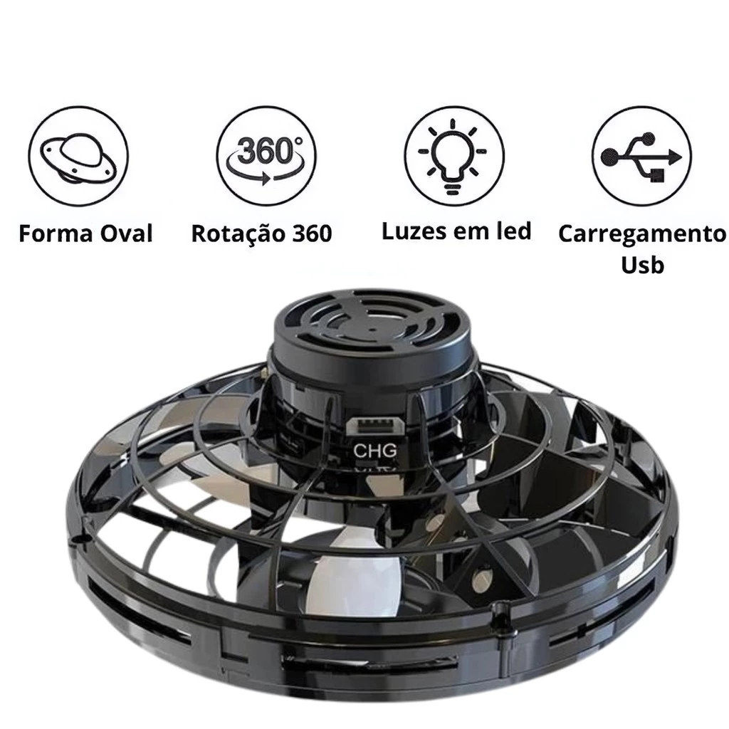 Disco Spinner Voa Divertido Led Drone Bomerang Brilha Infantil 360° Preto Castela 20