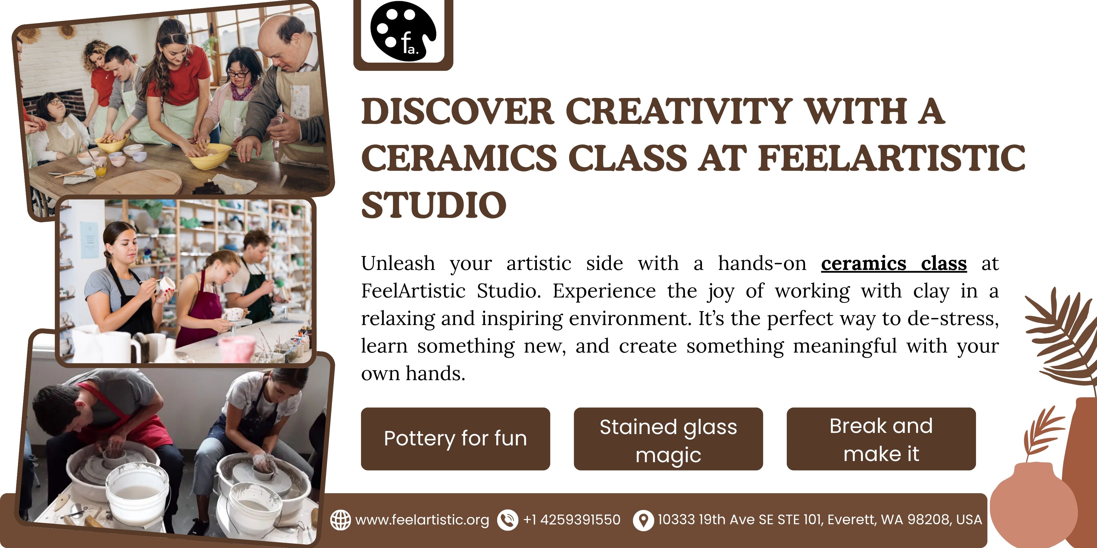 Unleash your artistic side with a hands-on ceramics class at FeelArtistic Studio. Experience the joy of working with clay in a relaxing and inspiring environment. It’s the perfect way to de-stress, learn something new, and create something meaningful with your own hands.