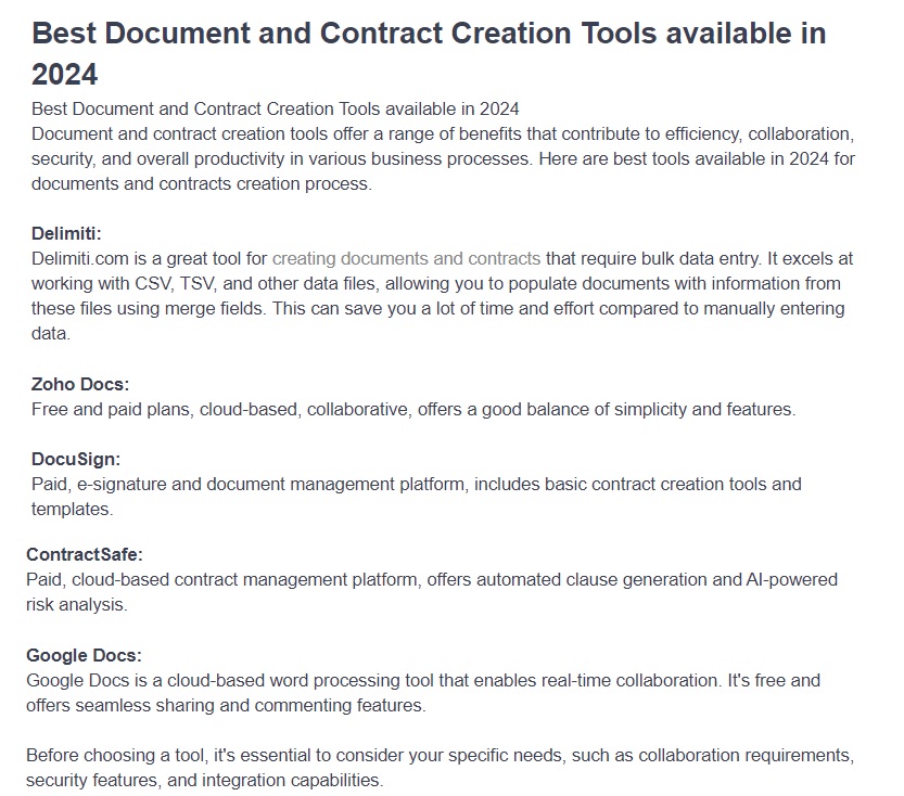 Top 5 document automation tools. Delimiti, google docs, DocuSign, zoho.