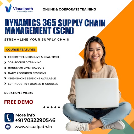 Visualpath offers a comprehensive Dynamics 365 Supply Chain Management program with job-focused sessions. Enroll in our Microsoft Dynamics 365 Supply Chain Training course from anywhere in the USA, UK, Canada, Dubai, Australia, or worldwide. We provide a free demo, job assistance, and corporate training options. Contact us at +91-7032290546.