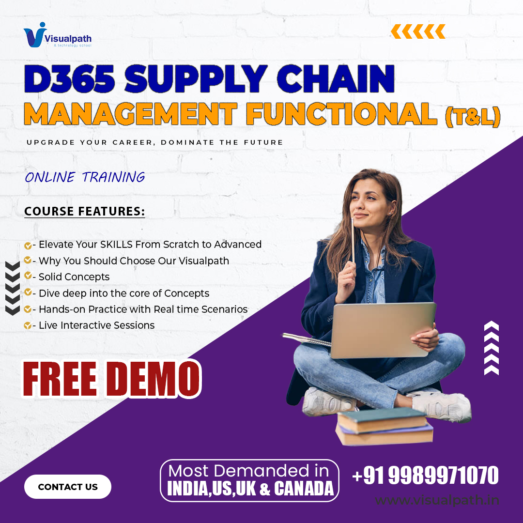 VisualPath provides Dynamics 365 Supply Chain Management Training. Live Instructor-Led Online Classes delivered by experts from Our Industry. Get Real-time exposure to the technology. All the class recordings, presentations will be shared with you for reference. Call & WhatsApp +91-9989971070.
