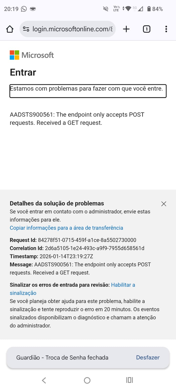 Some errors have occured and the system couldn't process your request.