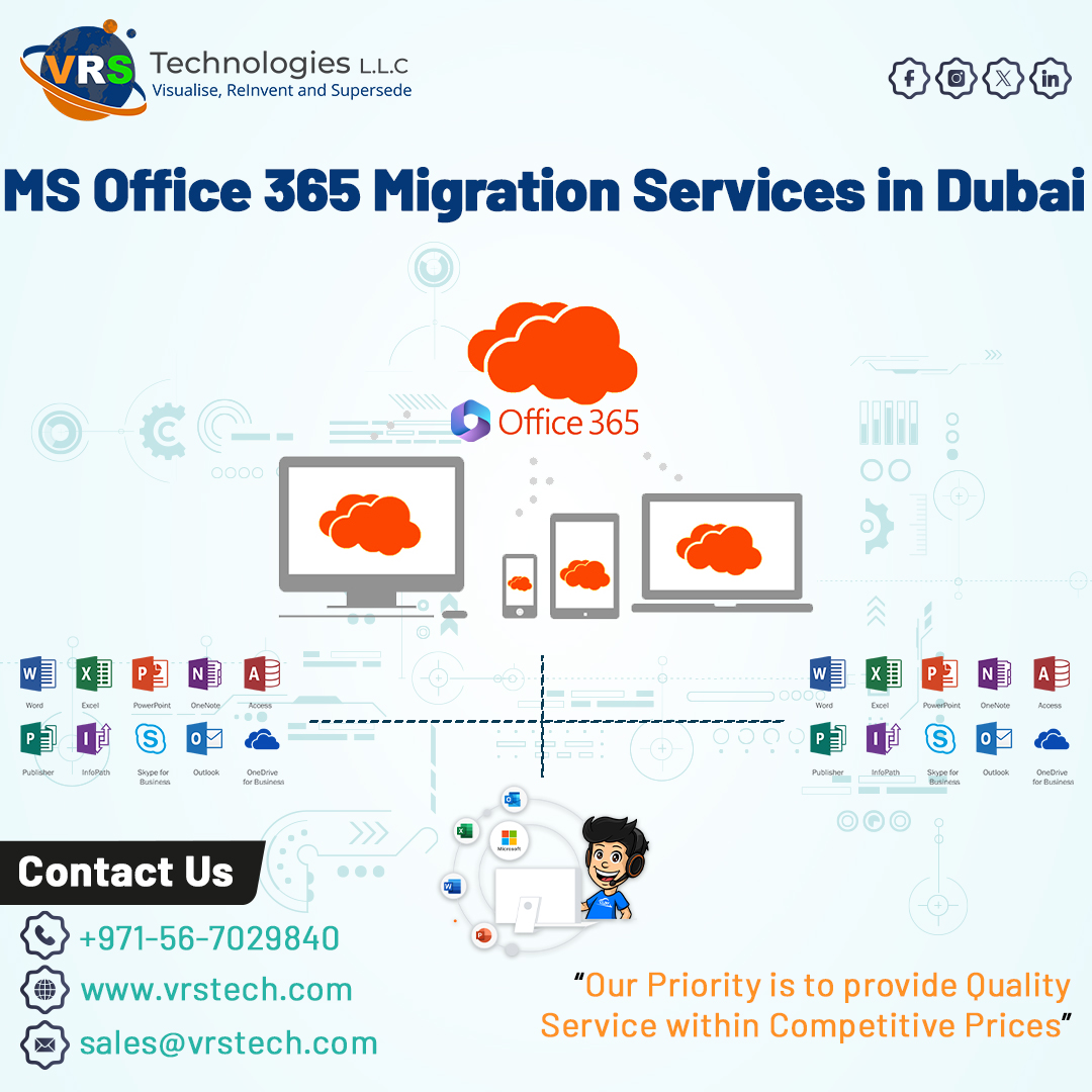 VRS Technologies LLC is the one of the prominent provider of MS Office 365 migration Services Dubai. We are the top company with years of experience and knowledge. For More Info Contact us: +971 56 7029840 Visit us: https://www.vrstech.com/office-365-cloud-services-in-dubai.html