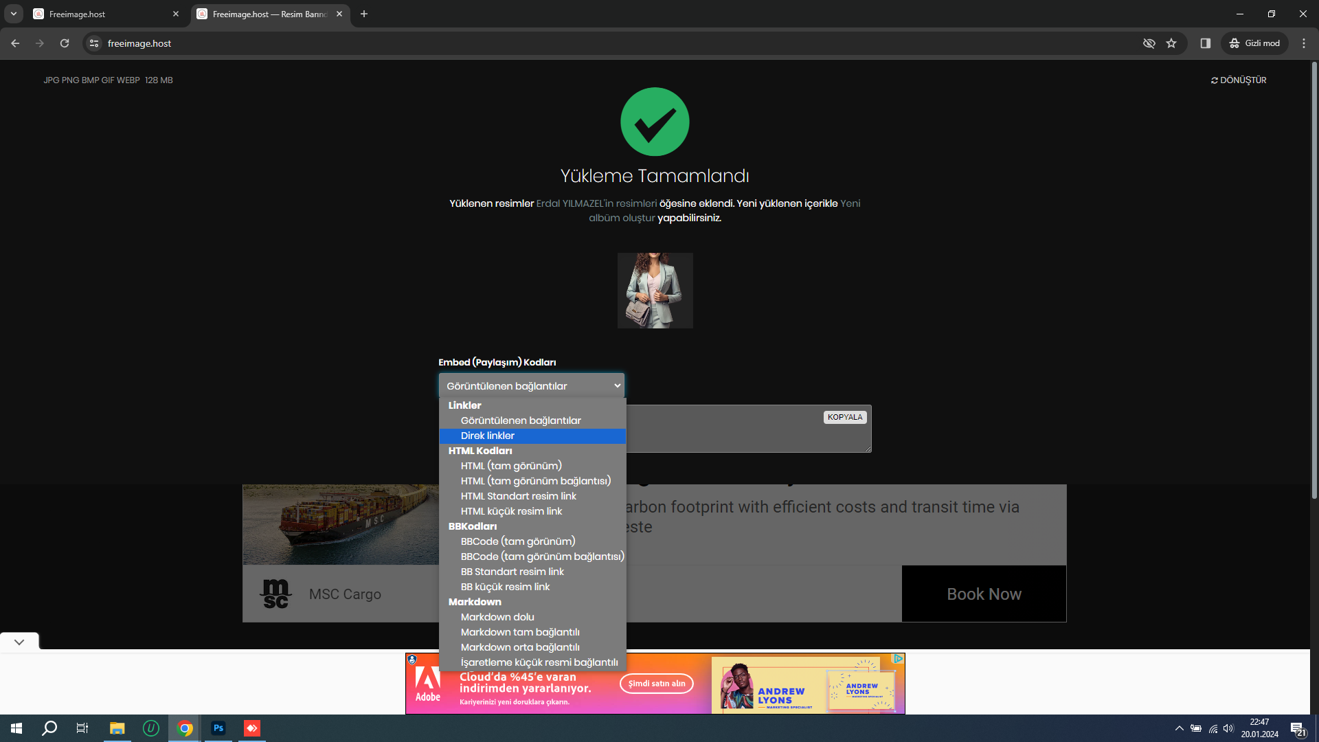Uploaded content added to . You can create a new album with the content just uploaded.