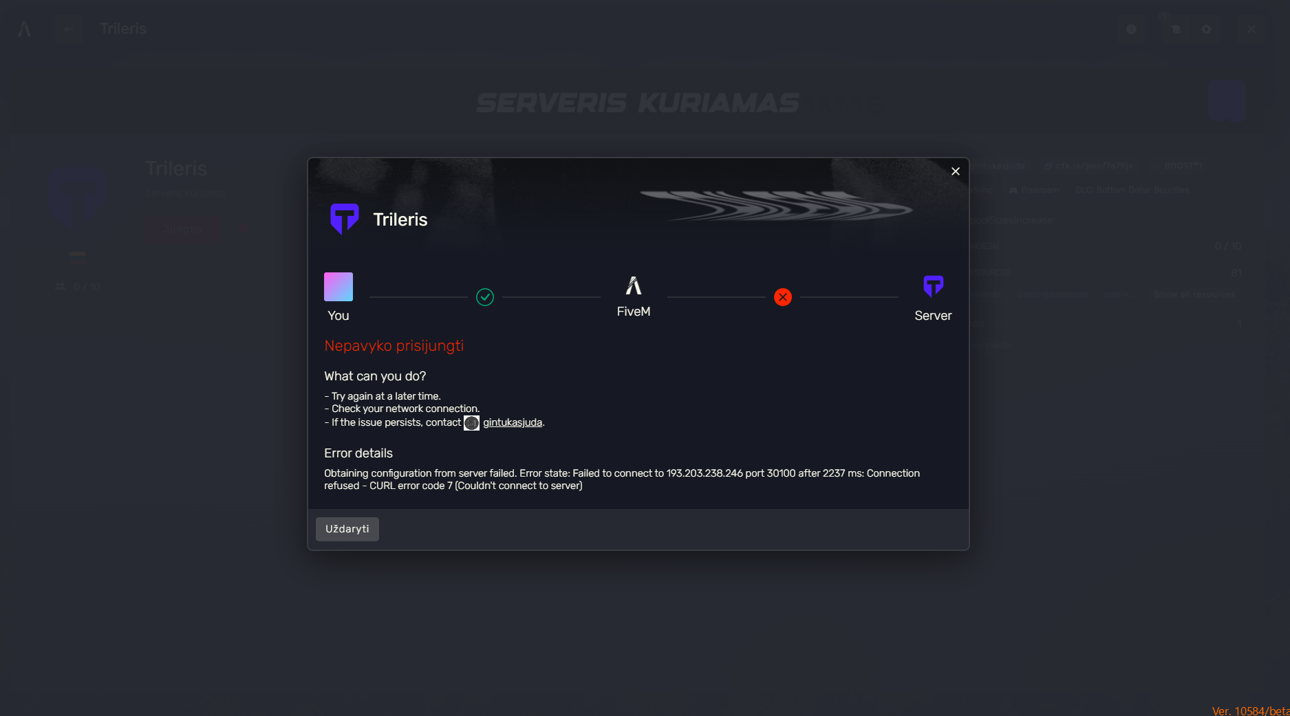 Check the error report for more information.