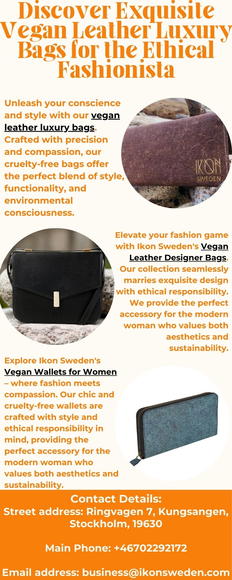 Step into luxury with our range of vegan leather bags. Embrace sustainability without compromising on fashion. Shop now and make a statement with our exquisite vegan leather luxury bags. Elevate your fashion experience with a touch of opulence that goes beyond aesthetics. Choose Ikon Sweden – where luxury meets conscience.