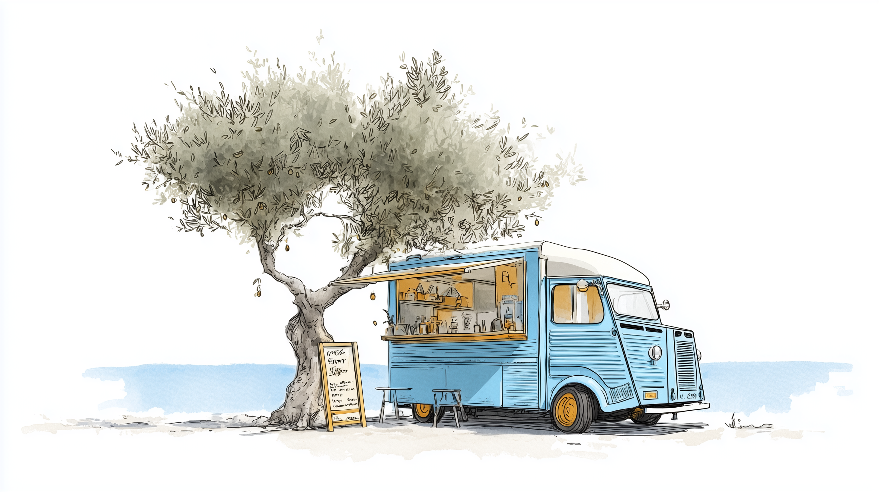 eman3139 charming hand drawn Greek food truck parked beside an b6011771 9990 4df5 a3c4 e9c15f4d0191