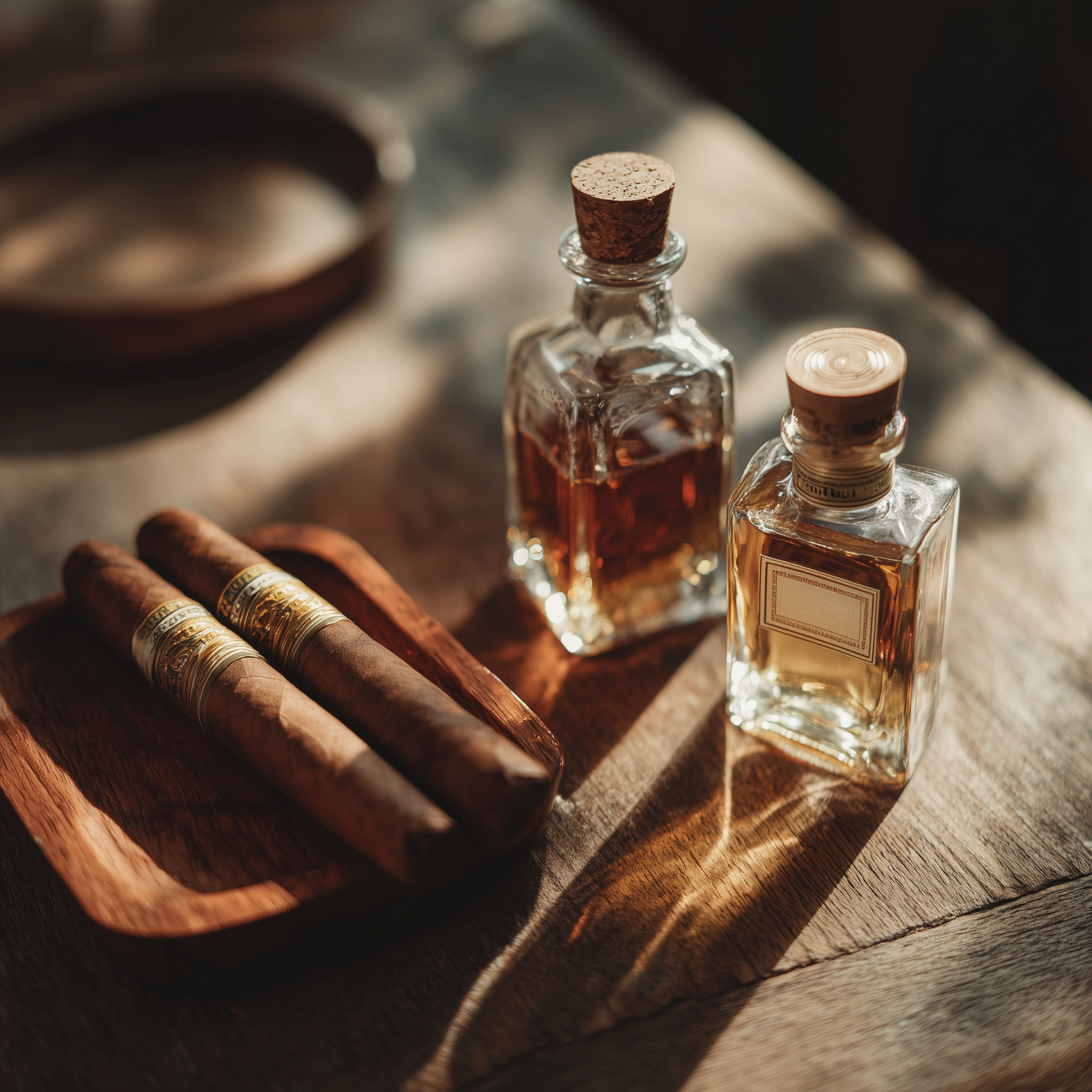eman3139 Two premium cigars arranged alongside two miniature bo b2c3ac14 b36b 41a3 97b0 27544afdd842