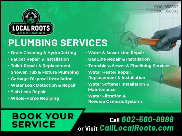 Trusted and family-owned, Local Roots AC and Plumbing serves Phoenix, Scottsdale, Paradise Valley, Arcadia & beyond with expert AC and plumbing services. Same-day service, no hidden fees, and fair pricing. Call today for your AC Tune-Up or Drain Cleaning. Reliable service done right the first time!