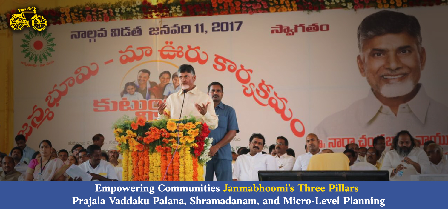 In a pioneering move towards inclusive governance, the Janmabhoomi program in Andhra Pradesh, spearheaded by the visionary leadership of Former Chief Minister Nara Chandrababu Naidu, introduced three transformative objectives - 'Prajala Vaddaku Palana' (PVP), 'Shramadanam,' and 'Micro-Level Planning.