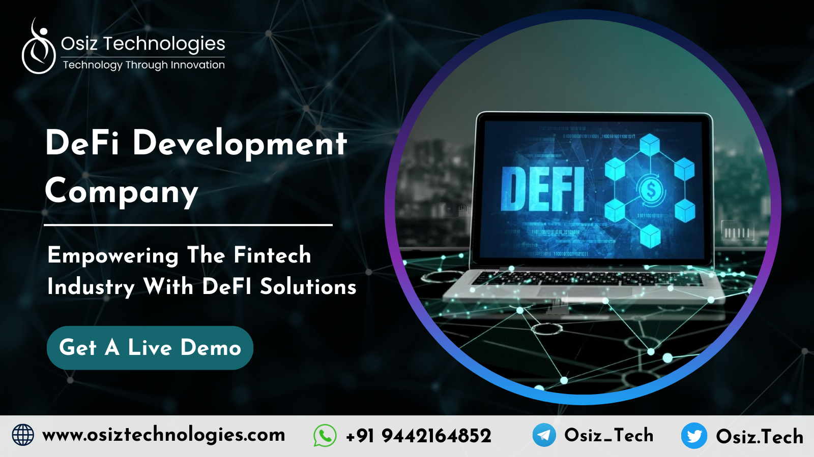 ? Osiz: Unleashing the power of DeFi! Leading the way in decentralised finance development, with services like DApps, Smart Contracts, DeFi lending & borrowing, DEX, wallets, insurance, and much more! ?