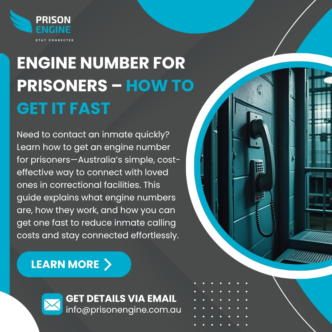 Looking for a faster way to connect with a prisoner? This image breaks down how to get an Engine Number for Prisoners—a dedicated local landline that forwards calls to your mobile. It’s a simple, cost-effective way to reduce expensive inmate phone charges. Perfect for families and friends, this visual guide walks you through the easy setup process and shows how you can stay in touch without the financial burden. Whether you're new to the system or just looking for a smarter alternative, this image provides everything you need to start saving on prison call costs across Australia. Stay connected—without overpaying. Visit Here - https://www.prisonengine.com.au/
