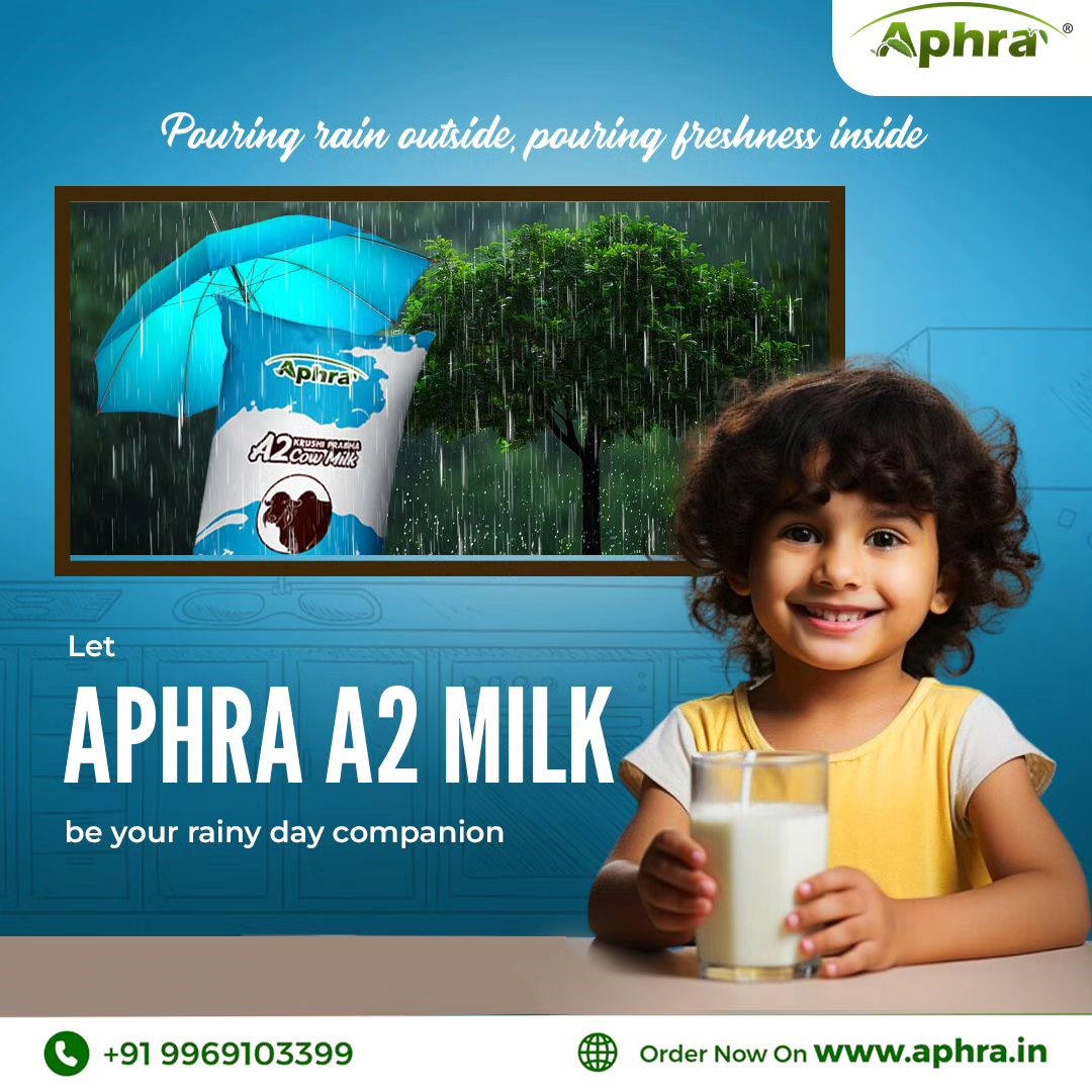 Rainy days and Aphra A2 Cow Milk go hand in hand. Cozy up with a fresh and nourishing cup of A2 Cow Milk. Perfect for relaxation and self-care. Visit www.aphra.in to learn more. Start your day with the pure, natural goodness of Aphra A2 Cow Milk, ensuring a refreshing and healthy beginning.