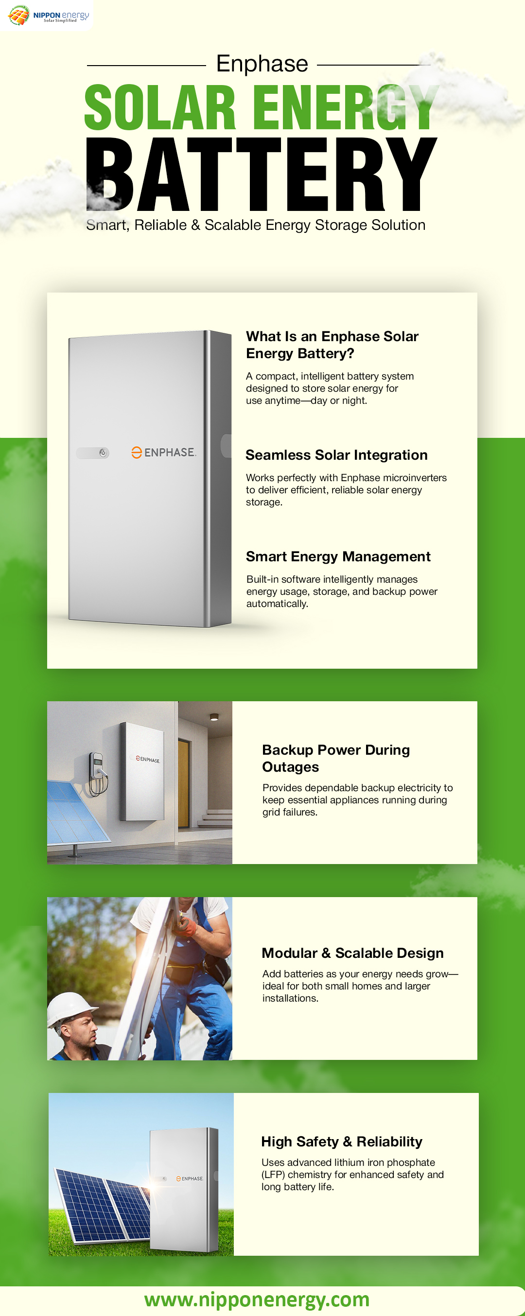 A compact, intelligent battery system designed to store solar energy for use anytime—day or night. https://nipponenergy.com/