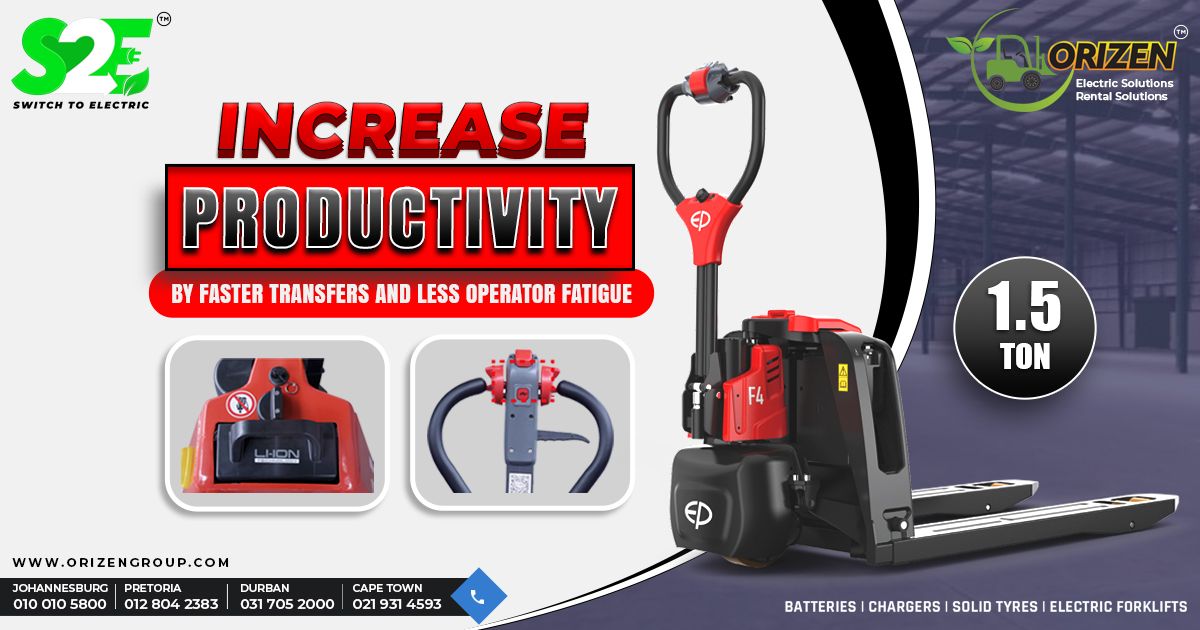 Boost your productivity with EP electric pallet trucks! Say goodbye to operator fatigue and hello to faster, more efficient transfers! With a 1.5-ton capacity and cutting-edge Li-ion technology, these trucks are designed to streamline your operations and maximize output. Perfect for warehouses and logistics, make the switch to electric with Orizen Electric Solutions and take your productivity to the next level!