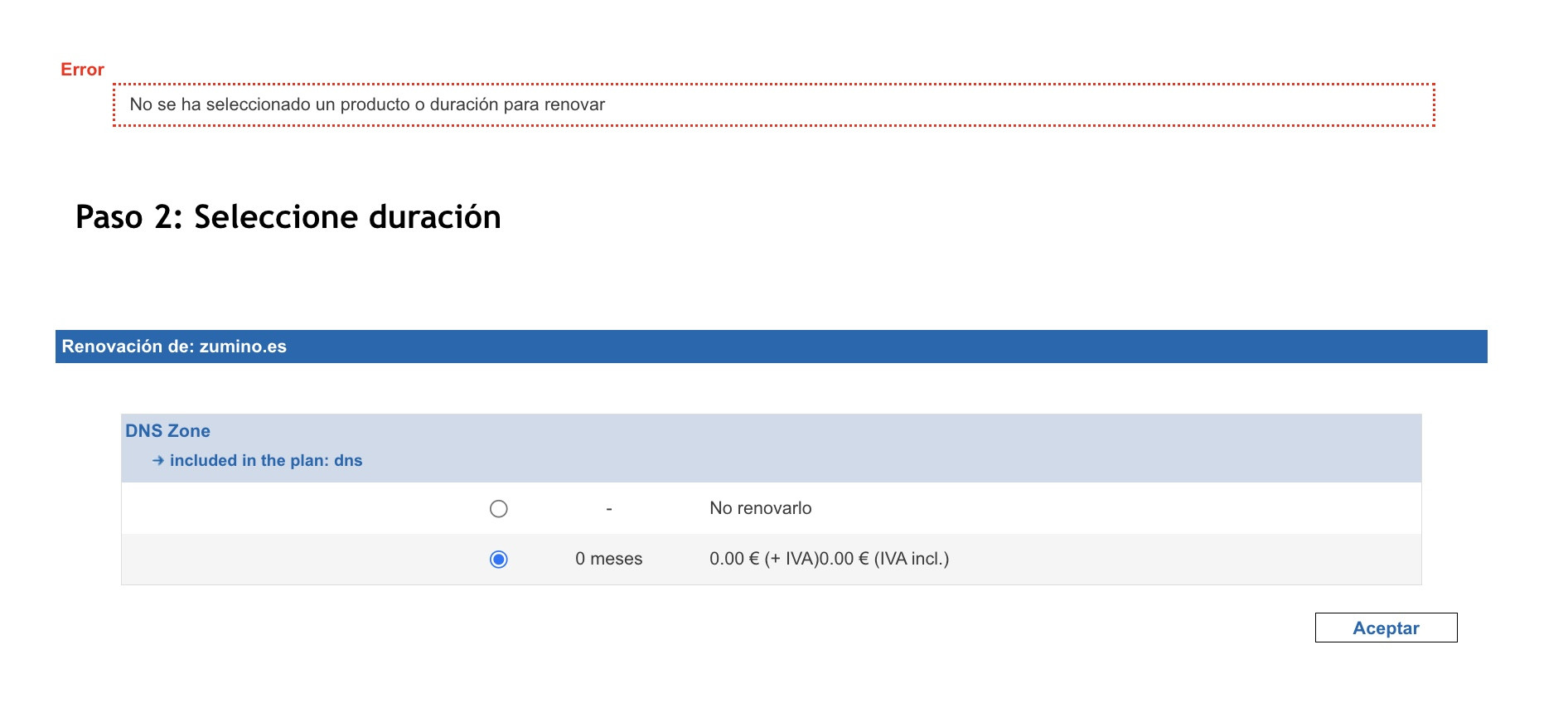 error dominio