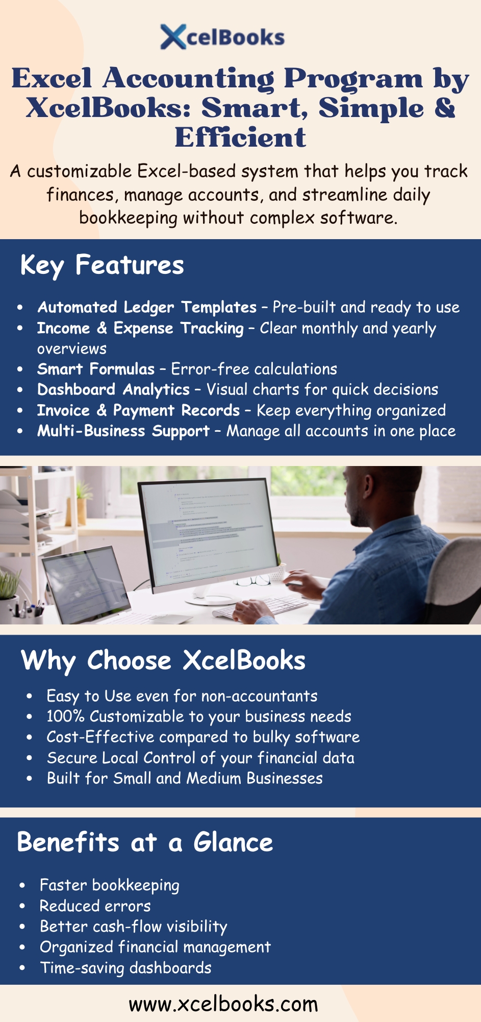 XcelBooks provides a powerful excel accounting program designed to simplify and streamline essential financial tasks. With automated formulas, structured templates, and user-friendly layouts, it helps you manage income, expenses, invoices, bank reconciliation, and financial reports with accuracy. The program reduces manual work, enhances data consistency, and offers clear financial insights for better decision-making. Easy to customize and suitable for small and medium businesses, XcelBooks’ Excel Accounting Program delivers a cost-effective, efficient solution for professional accounting management. https://xcelbooks.com/