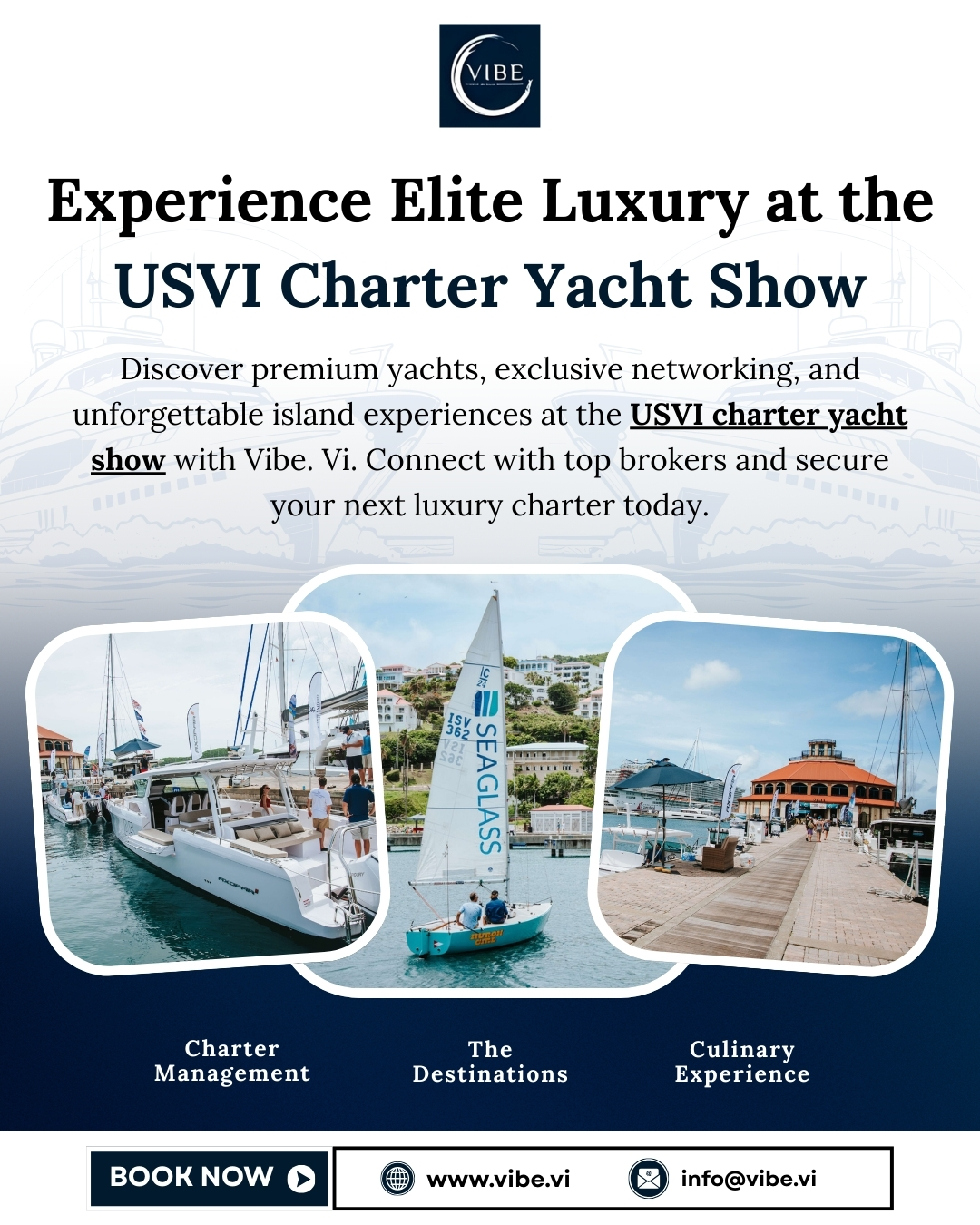 Discover premium yachts, exclusive networking, and unforgettable island experiences at the USVI charter yacht show with Vibe. Vi. Connect with top brokers and secure your next luxury charter today.
