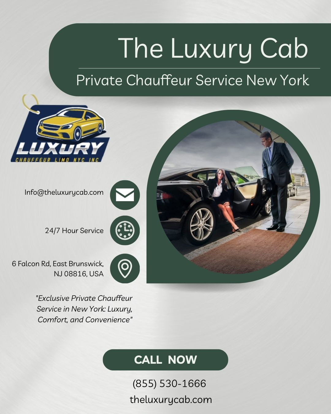 Discover the ultimate in luxury and convenience with The Luxury Cab's Private Chauffeur Service New York. Whether for business or leisure, our professional drivers ensure a smooth, comfortable ride in the heart of the city. Enjoy personalized attention, timely arrivals, and top-tier vehicles tailored to your needs. With The Luxury Cab, you can trust your journey will be as exclusive as it is unforgettable. Choose the best for your travel needs in New York today!