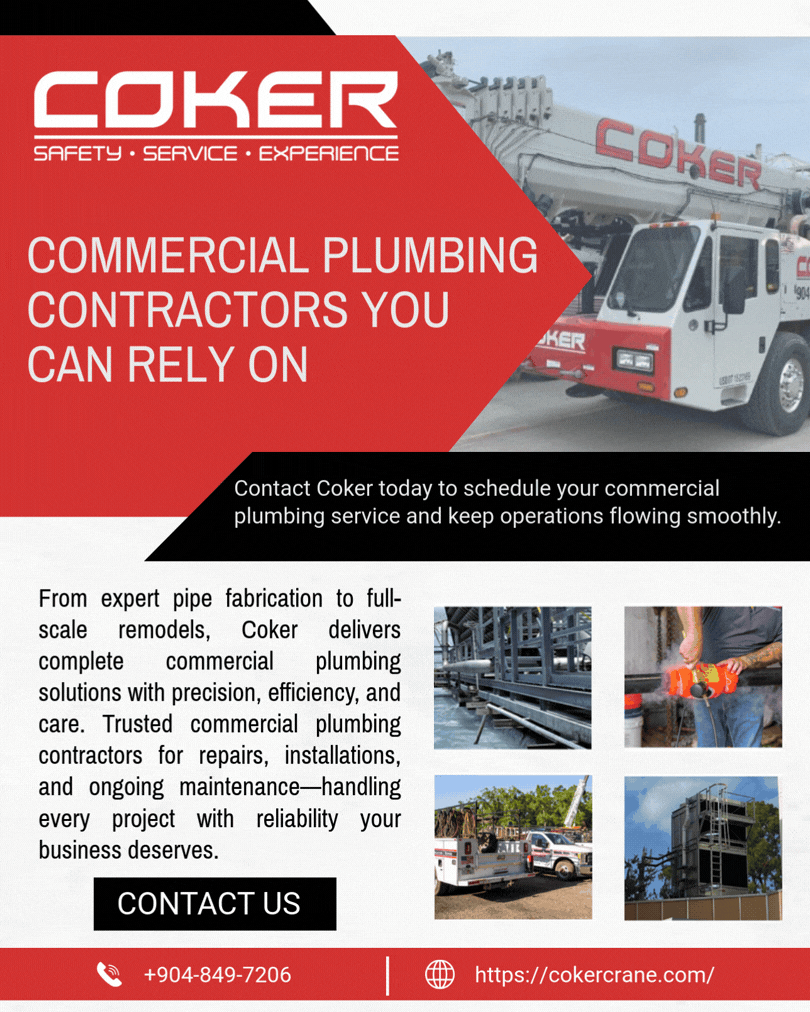 Coker Industrial Contractors offers complete plumbing services tailored to commercial facilities. Skilled commercial plumbing contractors ensure quality workmanship, long-lasting results, and efficient system performance. To know more, visit : https://cokercrane.com/commercial-plumbing/