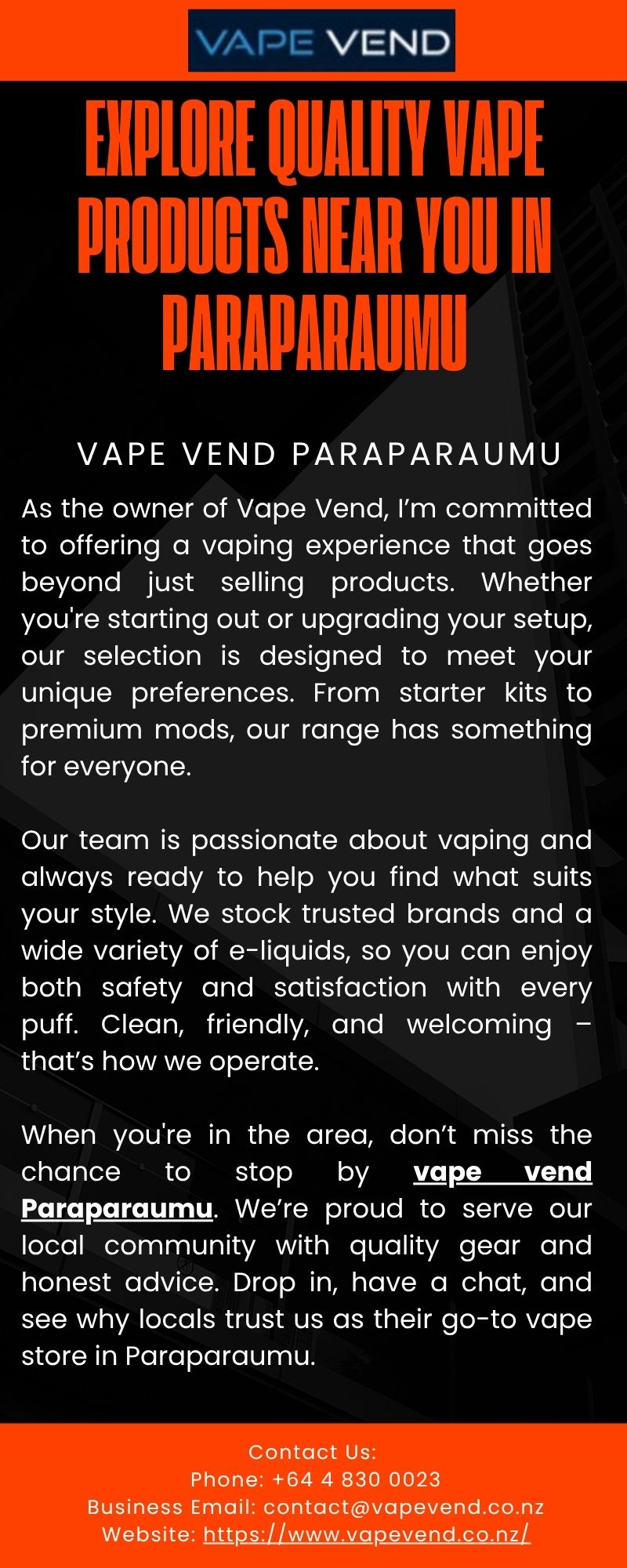 Visit: https://www.vapevend.co.nz/pages/vape-shop-in-paraparaumu-your-trusted-vape-store-vape-vend