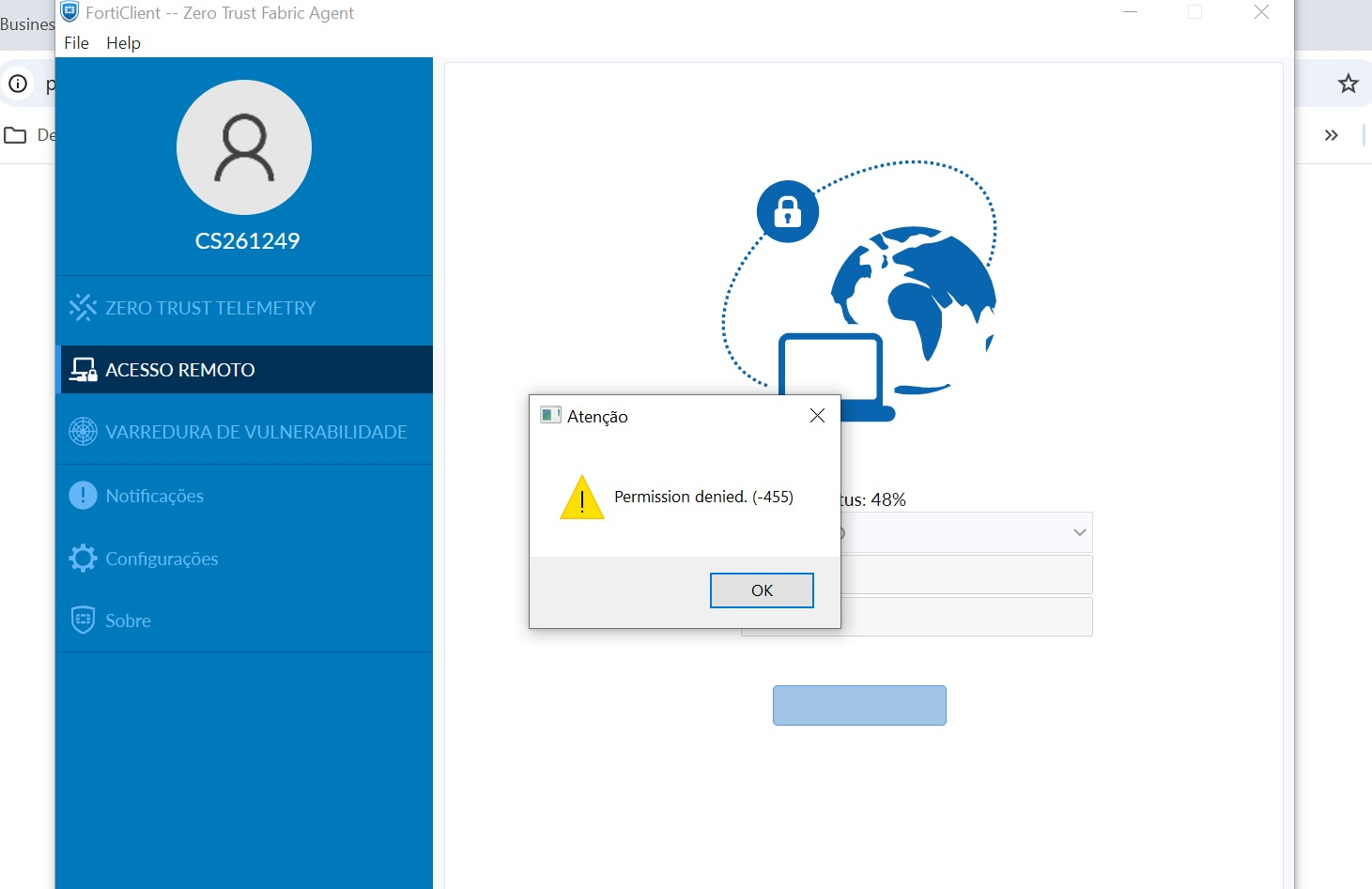 Some errors have occured and the system couldn't process your request.