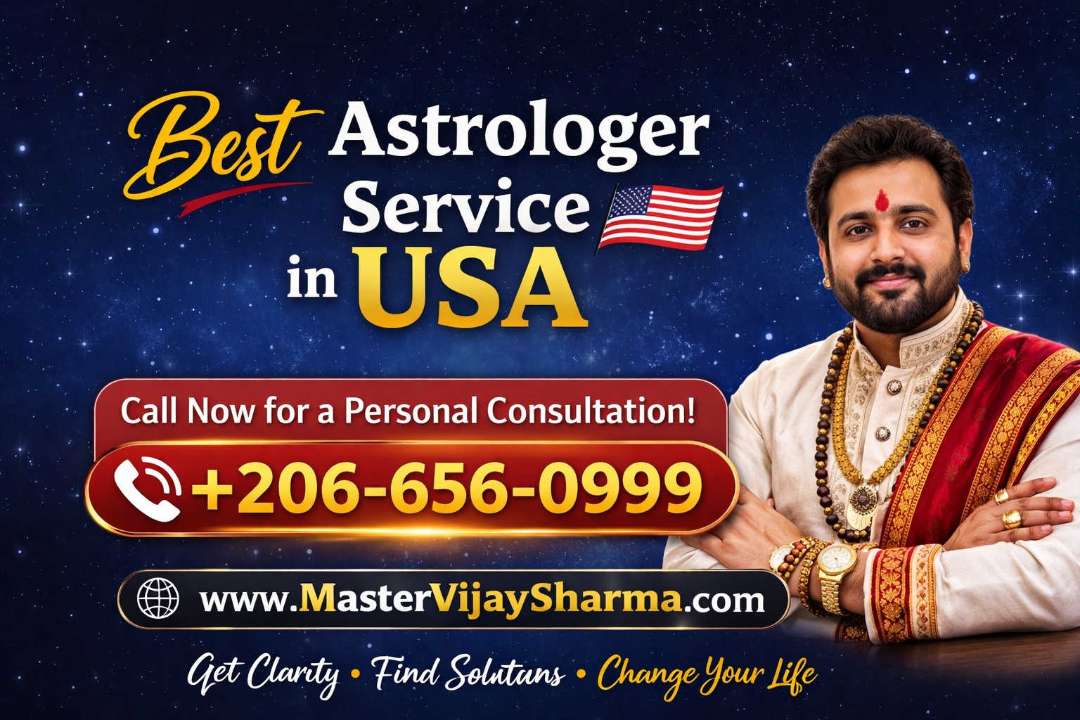 Get trusted guidance from the best astrologer service in USA with Master Vijay Sharma. Solve love, marriage, career, and financial problems with accurate predictions and powerful remedies. Personalized consultations help you gain clarity and confidence in life. Don’t let confusion hold you back—call +206-656-0999 or visit www.mastervijaysharma.com