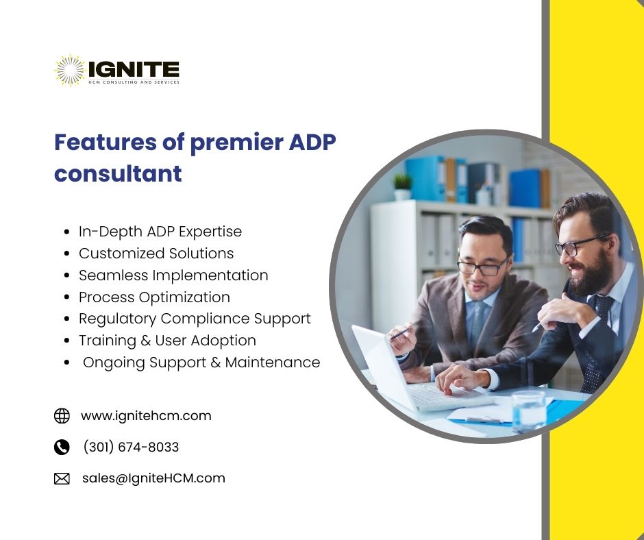 At Ignite HCM, our premier ADP consultant services are designed to help businesses maximize the value of their ADP platforms with expert guidance and tailored solutions. As trusted ADP specialists, we provide end-to-end support, including implementation, payroll processing, system optimization, and compliance management. Our consultants take a client-focused approach, ensuring every solution aligns with your unique business goals while improving efficiency and accuracy across HR and payroll functions. With a track record of delivering results, Ignite HCM’s premier ADP consultants empower organizations to streamline operations, enhance employee experiences, and achieve sustainable growth with confidence and precision.