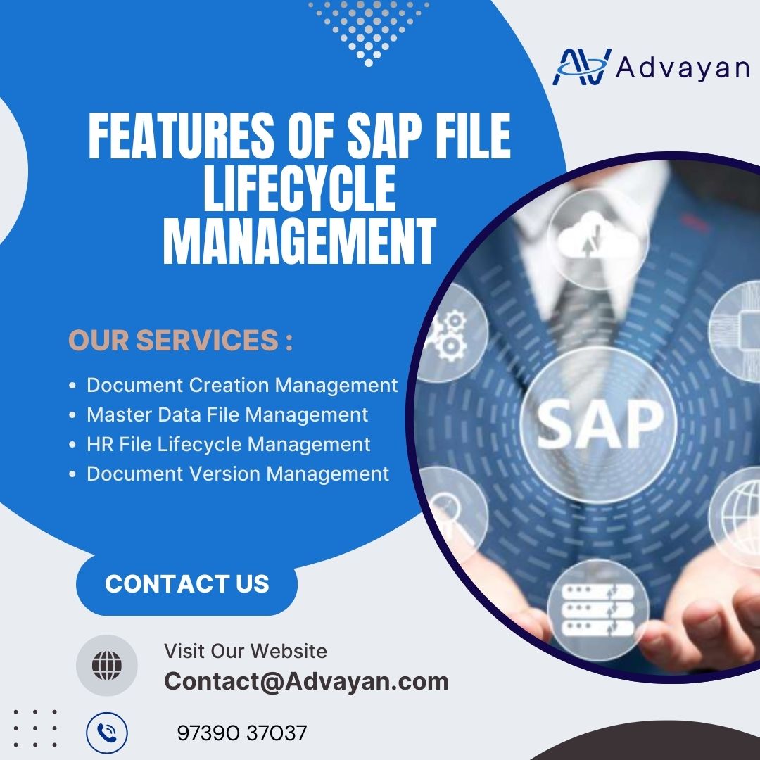 SAP File Lifecycle Management in Advayan is transforming how organizations control, govern, and optimize their critical documents. Today’s enterprises deal with massive volumes of digital files, and managing them securely across their lifecycle has become a top priority. Advayan leverages SAP File Lifecycle Management to automate document creation, classification, versioning, retention, and archival—ensuring compliance with industry regulations and reducing operational risks. With intelligent workflows, real-time visibility, and seamless integration across SAP modules, Advayan helps businesses eliminate manual processes and improve audit readiness. The solution enhances data security, boosts efficiency, and supports smarter decision-making. Advayan’s expertise ensures organizations gain a scalable, future-ready file management ecosystem aligned with modern digital transformation trends.