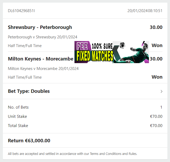 BEST HALFTIME/FULLTIME 100% SURE FIXED MATCHES