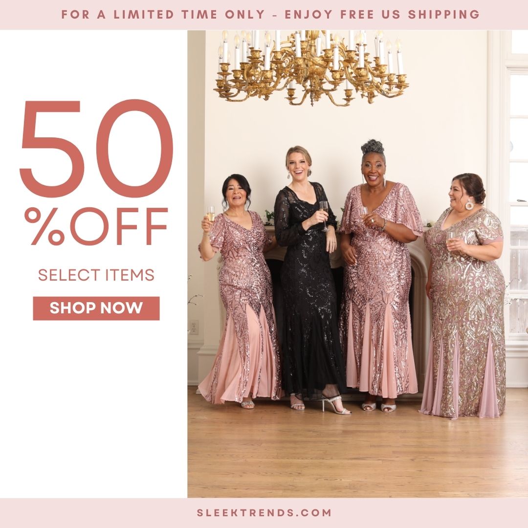 Ladies, it's time to indulge! Enjoy 50% off on elegant gowns, dresses, pant suits, and jumpsuits. All sales are final, so check our size chart before buying. Don't miss out on these amazing deals – style never goes out of fashion!