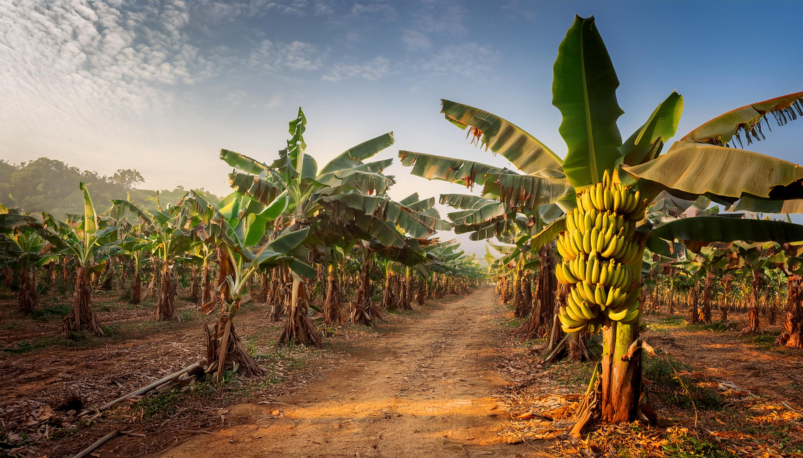 Firefly banana farm old with bananas hanging off trees 77220